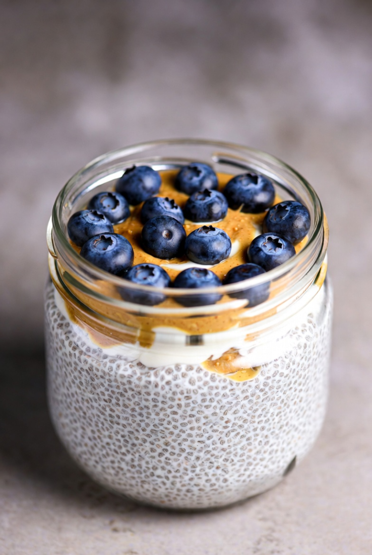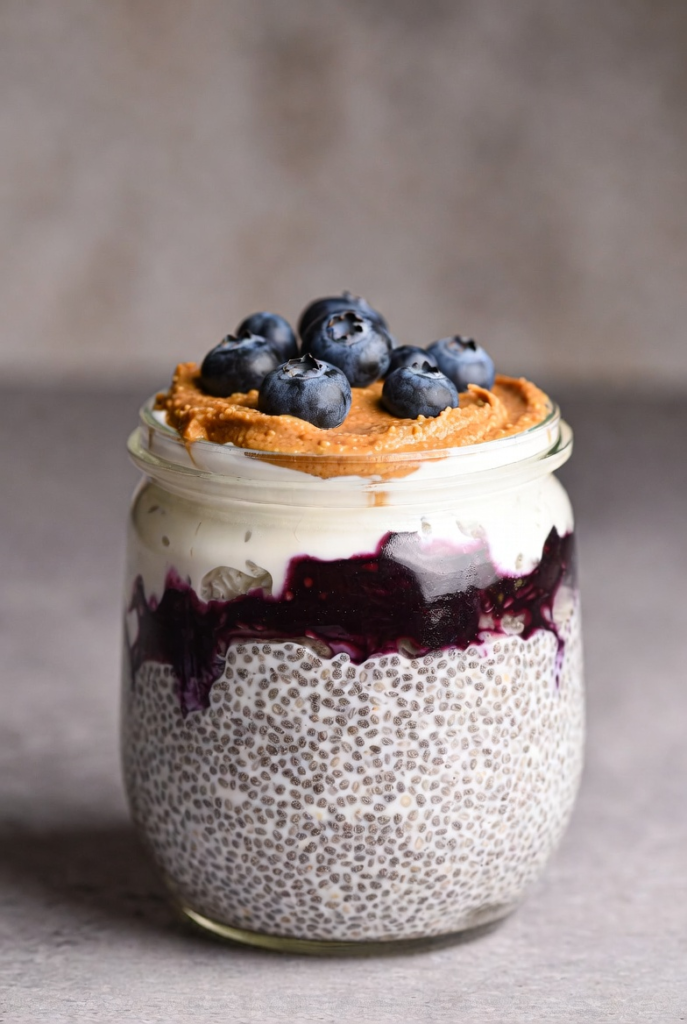 High-Protein Blueberry Peanut Butter Chia Pudding